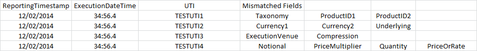 CME ETR will email registered users a high level summary of their trade breaks via a CSV file. The mismatching data will be shown within a spreadsheet as follows –
