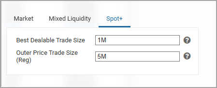 The following parameters can be configured for FX Spot: Mixed Liquidity and Metals: Mixed Liquidity cards: