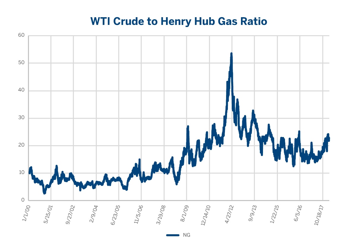 Natural gas and crude oil are both extremely important to the U.S. economy. The energy arbitrage between the two fuel sources was a significant determinant of their long-term price relationship, which in the past was relatively stable. The recent shale revolution has redefined the supply structure of the two fuel sources and has led to the decoupling of oil and gas prices. This fundamental shift is likely to prevail in the foreseeable future, unless the supply-induced downward pressure on gas prices is alleviated by a significant increase in exports of U.S. natural gas in the form of liquefied natural gas (LNG).
