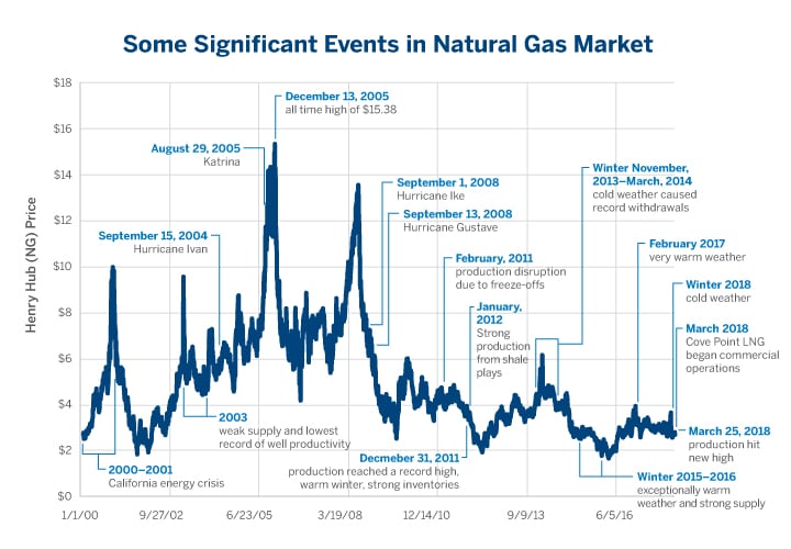 These price shocks were attributed to commodity-specific events as shown in Figure 4 & 5. In particular, natural gas is more prone to short-term price shocks and supply imbalances due to seasonality, storage dynamics, and weather-related events, which tend to increase the volatility and cause disequilibria to the short run oil and gas linkage. For example, in 2005 hurricanes Katrina and Rita caused a supply disruption that triggered a significant spike in natural gas prices, while the impact on oil prices was not significant. On the other hand, oil has a more geopolitical dimension and responds to global events. For example, following global economic expansion, oil prices rose to reach $145/bbl. In July 2008 then collapsed to below $40/bbl. because of the credit crunch and recession.