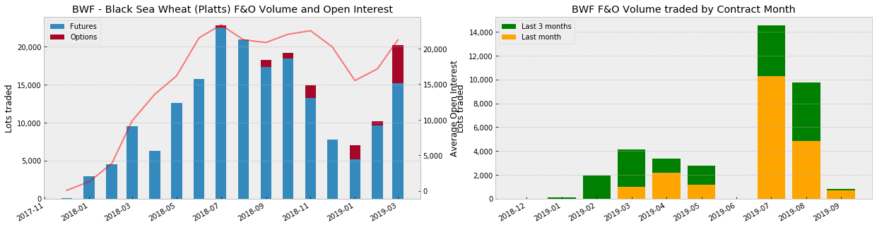 Black Sea volume (as of Mar ‘19): Wheat Futures (BWF) 181,681 lots, Wheat Options (BWO) 11,160 lots ; Corn (BCF) 33,810 lots