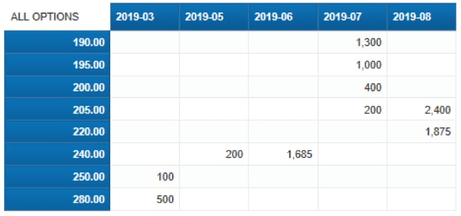 Black Sea Wheat (BWF) Option Strike/ Expiry Month: Open Interest as of March 29th, 2019