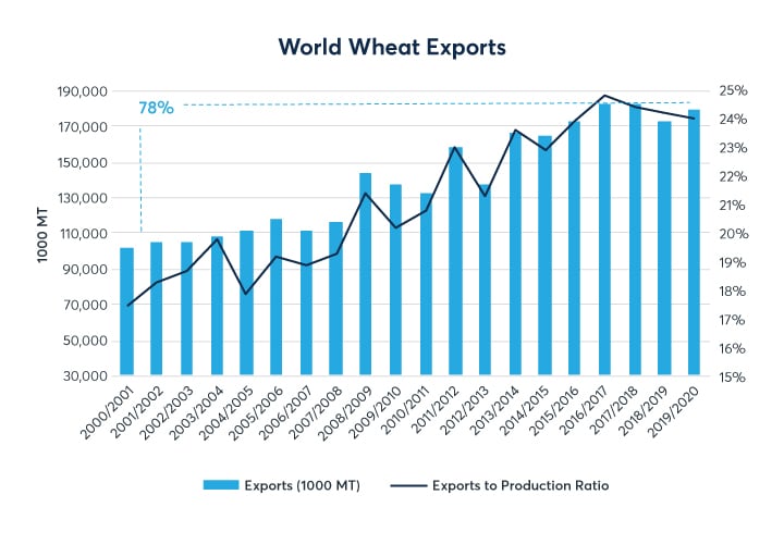 2000-2019 Wheat Exports Wheat Production World Population