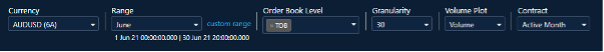 This allows you to spread and volume data for either the most active contract month (typically the front quarterly contract in the major currency pairs) or all contract months blended together.