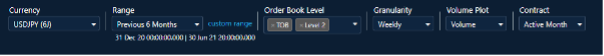 In addition to TOB data, you can choose to view spread and order size data for up to ten levels of the orderbook for both Futures and FX Link markets.
