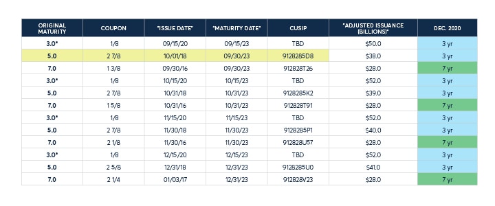 3-Year Treasury Note futures are an effective hedge for Treasury issuance. On September 8, 2020, the Treasury is scheduled to auction $50B of notes that will be eligible to deliver into the Dec 20 futures contract (Z3NZ0), the active front-month based on volume and open interest.