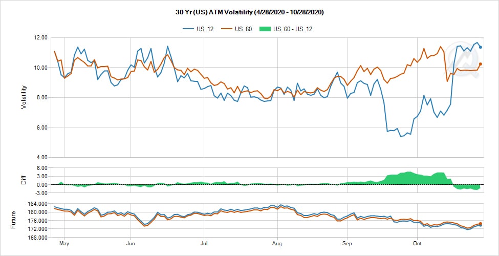 Exhibit 8: 30-Year Treasury ATM volatility for select constant maturities (28 April 2020 – 28 October 2020)