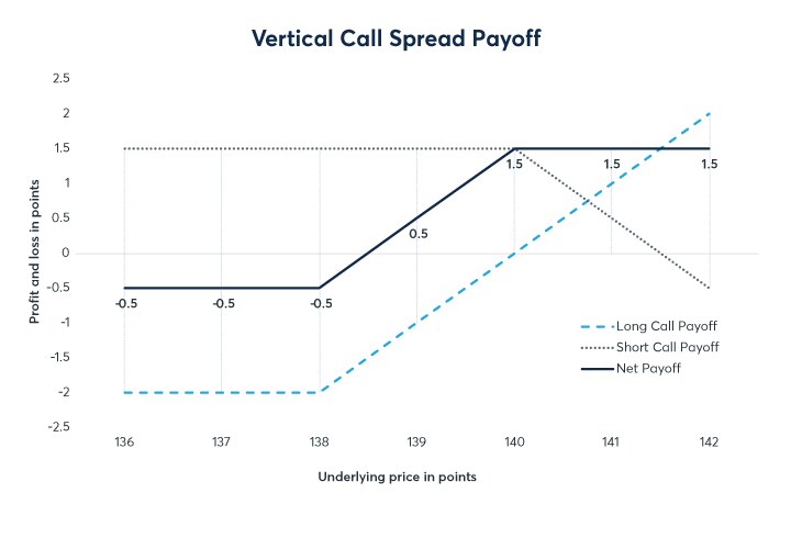 The hedge fund portfolio manager also believes that the market could go up but wanted any potential portfolio construction to limit downside risk. In this hypothetical example, she found that buying an at-the-money (ATM) 138-strike Weekly call option for two points on this and simultaneously selling the 140-strike Weekly call option for 1.5 points on this hypothetical Treasury future achieved the exposure she seeks. Exhibit 11 show the payoff.