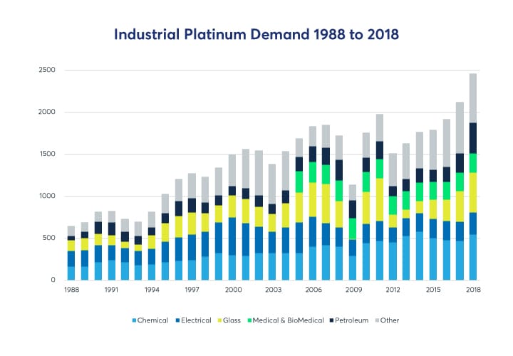 Figure 1: Industrial Platinum Demand 1988 to 2018