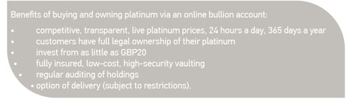 Key features of owning platinum via an online bullion account