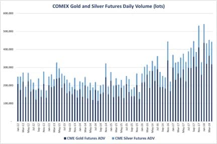 CME Group’s Globex, the electronic trading platform, was developed to enable the exchange to become a global marketplace with an after-hours trading platform. The ability to conduct electronic trading round-the-clock was an important factor behind the volume growth of COMEX gold and silver volumes. Before that innovation, transactions were conducted primarily on the trading floor where buyers and sellers had to physically gather together to negotiate prices during U.S. business hours.