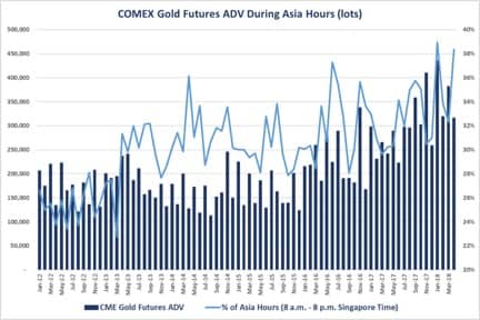 Asia is known as the biggest demand center for commodities as countries in the region continuing to show strong economy growth compared to the rest of the world. There is a natural need for firms and end users to manage price risks tied to Asia market events during local business hours. The increasing activities in CME Group’s precious metals futures and options contracts during Asia hours reflects this trading need being met. At the same time, the deepening liquidity also presents trading opportunities to all market participants in the region.