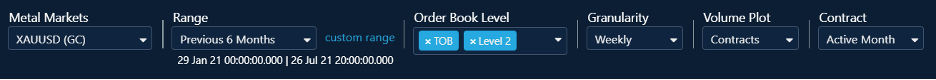 A look at CME Group Metals futures order book volume for the selected order book levels.