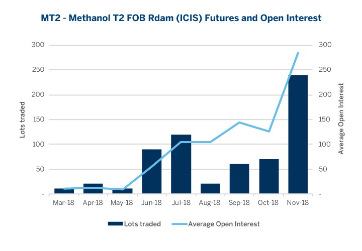 In this environment, CME Group believes that financial contracts can play an important role in helping companies hedge their commodity price risk. The exchange launched European methanol futures in early 2018 and the contracts have seen continued activity since. The continued growth in volume indicates that the European methanol industry is progressively adapting risk management tools prevalent in other energy markets. Recent trades in October cover the entire 2019 calendar year, which could indicate that financial hedging via futures is becoming an integral part of forward planning and commodity price risk management for market participants. Physical trades based on floating, PRA indexed prices provide an alternative to the traditional contract price mechanisms; and financial contracts allow participants to fix their input or output costs against these physical transactions. Methanol price risk can be hedged and managed on a standalone basis, or as part of a comprehensive hedging strategy that includes upstream feedstock cost hedging for producers, or downstream hedging of the final product for methanol consumers. Also, in a credit-constraint environment, exchange trading and clearing of contracts offers the benefit of removing counterparty credit risk in financial transactions.