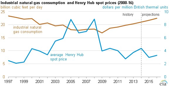 Chart 1. Industrial Gas Consumption & Henry Hub Price3