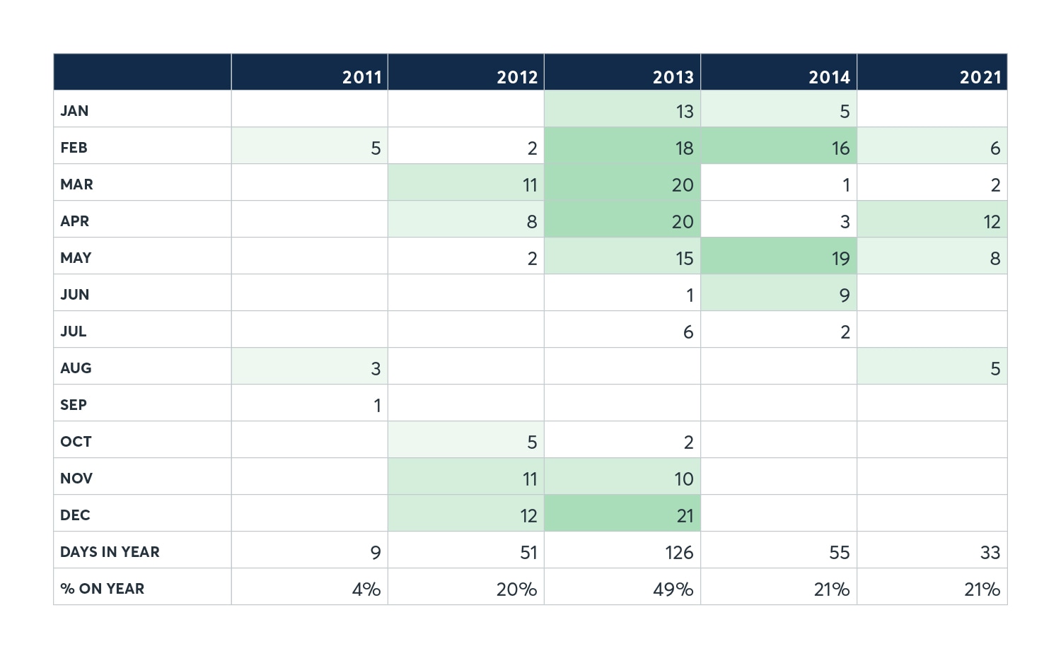 The Grain & Oilseed market has seen dramatic price action over the last 12 months given increased demand and tight balance sheets. However, things have settled down as we approach the North American harvest looking at implied volatility levels. We have seen Soybean volatility go from a high of 43% to now trading below 20%. The table below shows the occurrences when “Beans are in the teens” at the same time implied volatility is below 20%.