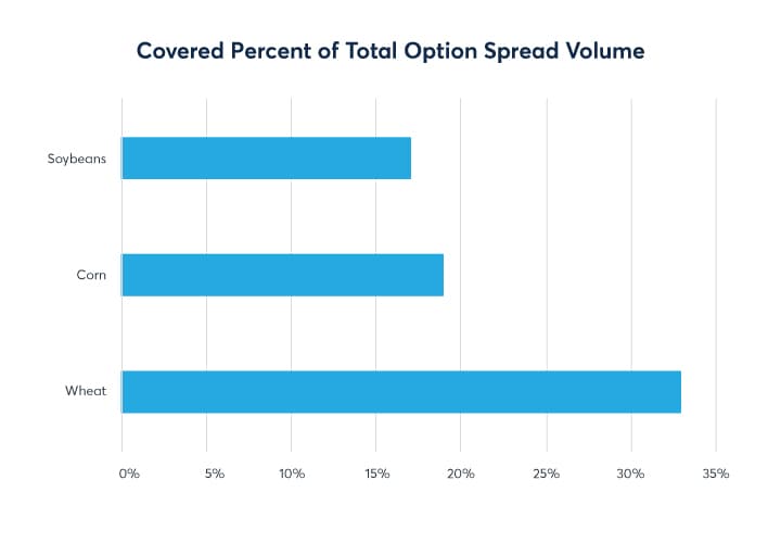 Across the grains complex options strategies are heavily utilized by both hedgers and liquidity providers in a multitude of approaches. Options can provide cost-effective directional coverage and allow for flexibility. Within options, the growth and proliferation of option spread strategies has grown steadily, today accounting for just over 50% of all grain options volume executed at CME Group. Since the migration to CME Globex in 2012, electronically executed option spread strategies have grown over 2,200%. This paper will seek to explore some of the overall trends driving the growth of options strategies and look at the differentiating characteristics between the most utilized strategies in Corn, Soybeans, and Wheat using trade volume data from 2017, 2018, and 2019.