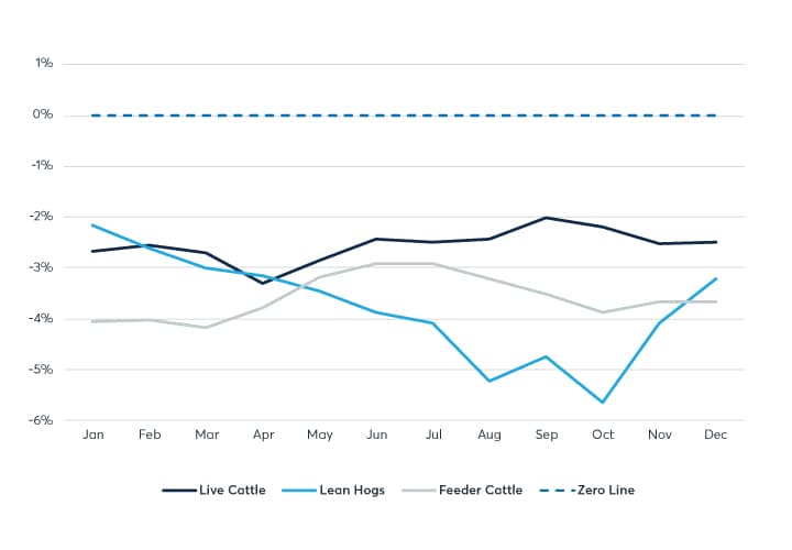 Figure 5: Average Seasonal Livestock Complex Skew (2007- October 2020)
