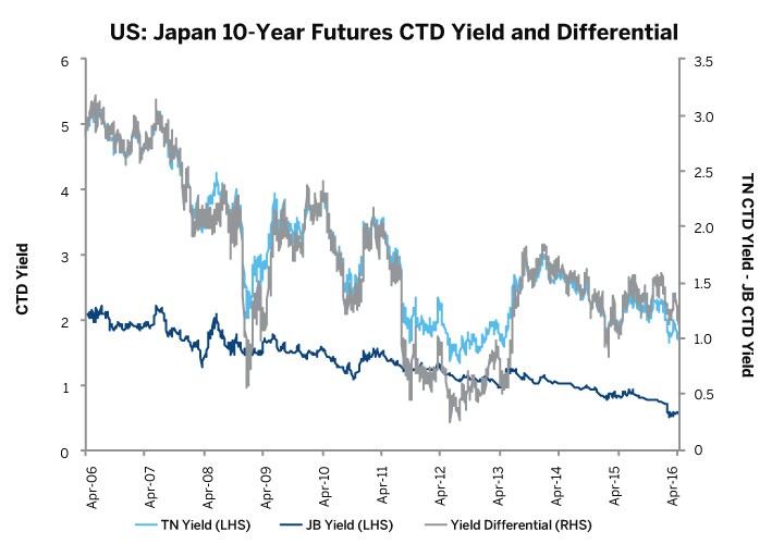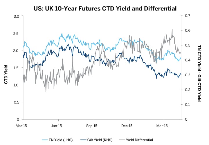 The addition of Ultra 10-Year US Treasury Note (“TN”) futures to the exchange’s Treasury futures suite opens the door to significantly finer precision when utilizing futures to spread the 10-year point of the Treasury yield curve against the equivalent point on foreign sovereign yield curves. In this note, we discuss the structure of TN’s deliverable basket, the degree of correlation between price dynamics of TN futures and those of German, UK, Canadian, Japanese and Australian 10-year sovereign debt futures, and how a market participant can take advantage of these correlative relationships to make relative value trades.