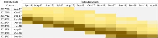Thus far, the investment case for COMEX gold futures, and the attractiveness of arbitrage trading between COMEX, SHFE and TOCOM, have been laid out. There are some intricacies that a trader needs to be aware of to optimize his trading experience. The first is knowing which contract months to trade during different periods of time. Retail investors would trade the most liquid contracts, as these contracts have the tightest bid-offer spreads and the deepest order book.