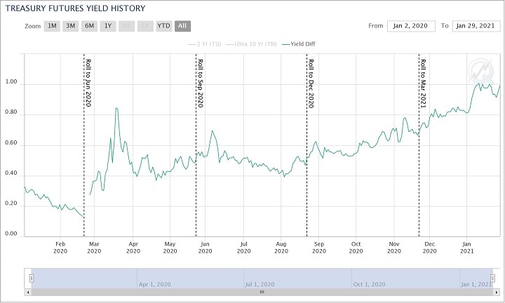 Exhibit 6: Ultra 10 vs. 2-Year futures yield spread (2 January 2020 – 29 January 2021)