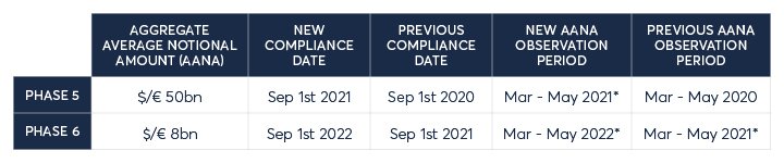*Dates subject to US regulatory confirmation (otherwise Jun-Aug 2020/21 for firms subject to US rules)
