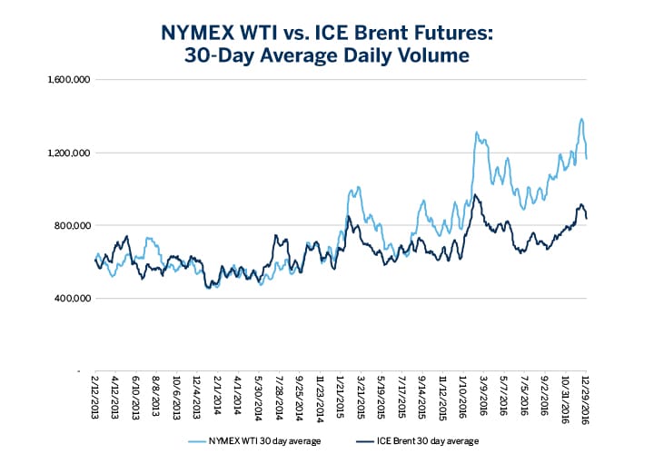 NYMEX WTI Futures Volumes Outpace Brent Futures