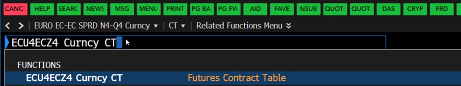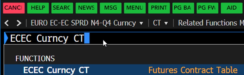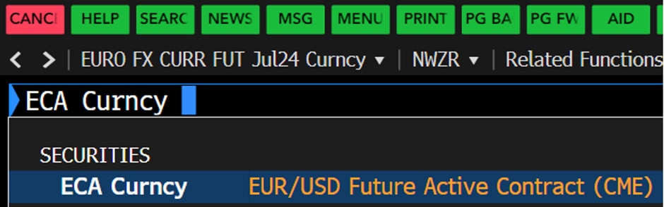 1. Taking “ECA <Curncy>” (EUR/USD futures) as example, type in “ECA Curncy CT” and press “Enter.”