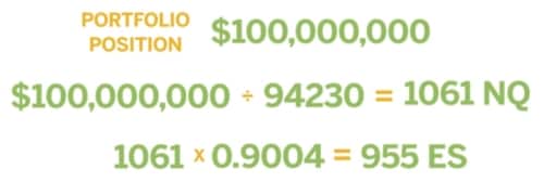 In this case, we will divide the notional value of the NASDAQ-100 futures by the notional value of the S&P 500 futures.