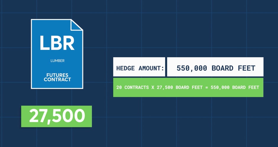 A single CME Group Lumber futures contract has a contract size of 27,500 board feet. To hedge the full order of new homes, needing about half a million board feet, the construction company can purchase 20 Lumber futures contracts.