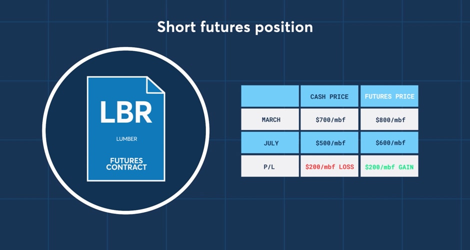 If cash prices fall and the sawmill sells their lumber for less money, those losses could be mitigated by profits from the futures position.