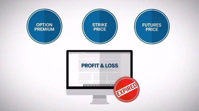 The profit and loss of an option position at expiration is a function of the original premium and the difference in price between the futures contract and the strike price of the option.