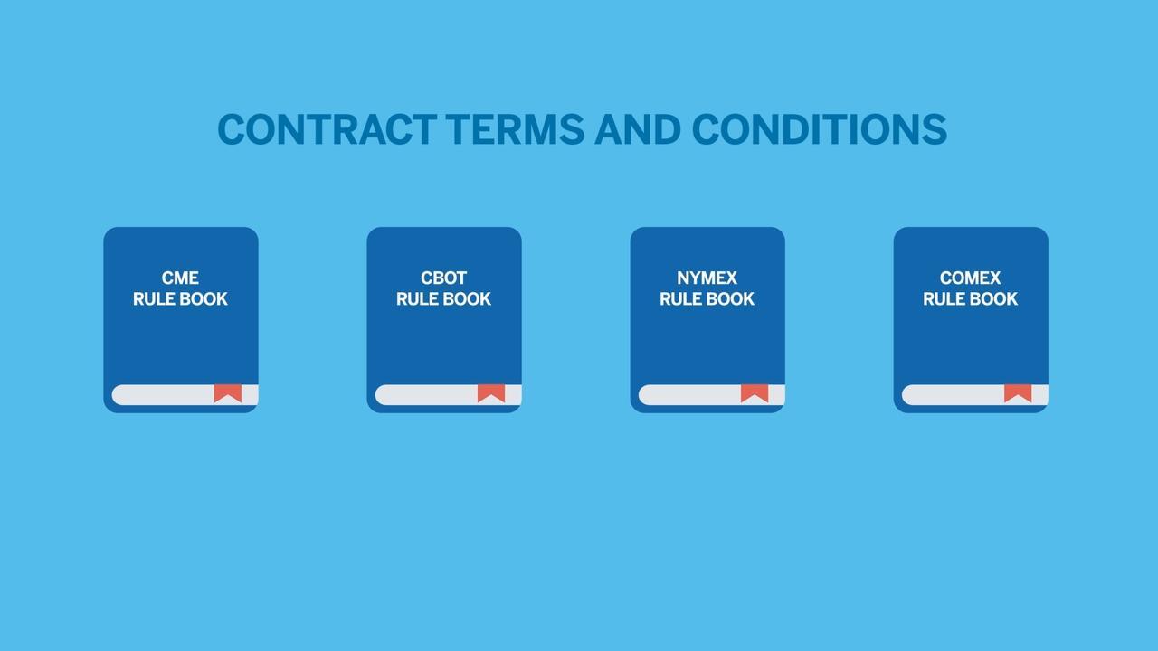 Each rulebook includes access requirements, terms and conditions of any contracts to be traded, and rules prohibiting abusive trade practices. The rulebooks can be found in the Market Regulation section of cmegroup.com