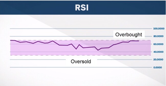 If the RSI is over 70, this is generally seen as over-bought and price might move down. A reading of 30 indicates a market that is over-sold and price might move up. Traders can use the indicator to assess a market after a large, quick move up or down. If a market spikes and RSI moves above 70, it could mean the market is extended beyond what might be normal for that market and price could pull back. On the other hand, if price spikes and RSI does not go past 70, there might be more room for the market to continue to move higher.