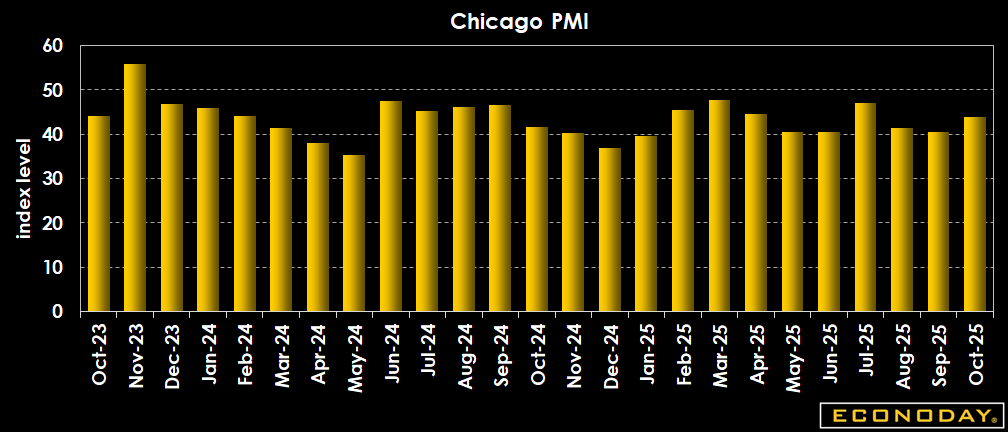 The Chicago PMI accelerated to 43.8 in October from 40.6 in September, exceeding the 42.0 figure anticipated in the Econoday consensus forecast.