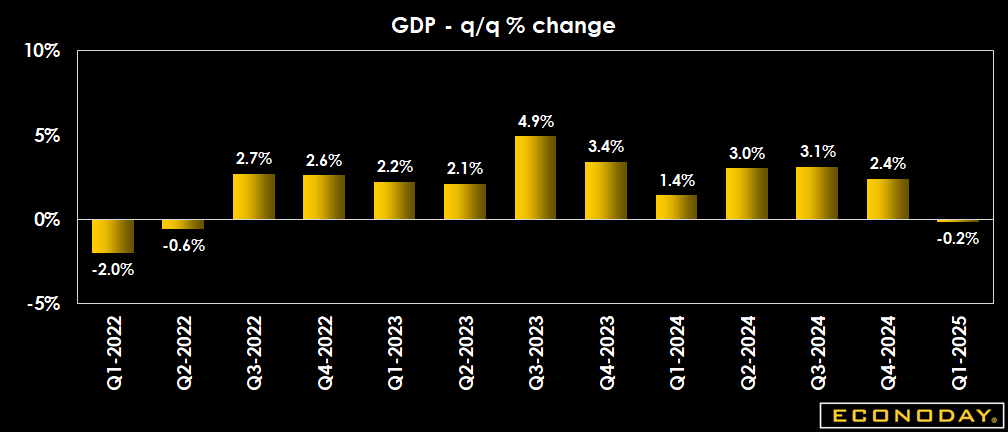 The dip in growth in the first quarter 2025 remains a story of a swift and deep widening in the trade deficit that has an outsized effect. However, it is now also a story of moderating consumer spending after households stocked up on goods and locked in prices for services in the fourth quarter 2024 resulting in falling demand in the first quarter.