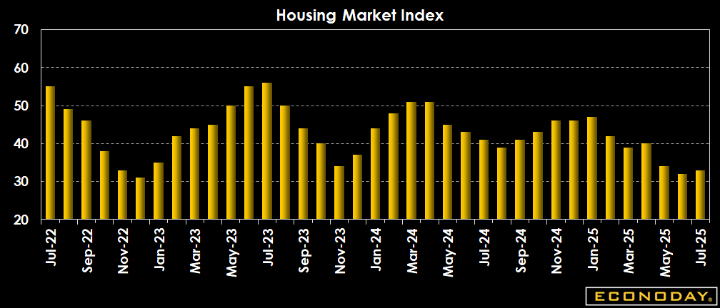 Builder confidence in the market for newly built single-family homes was 33 in July, up from 32 in June but below July 2024's reading of 41. Sentiment has now been stuck in negative territory for 15 straight months.