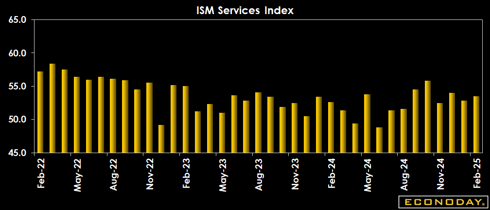 Another decent month of expansion is seen for services with the ISM index at 52.7 in February, nearly steady from 52.8 in January.