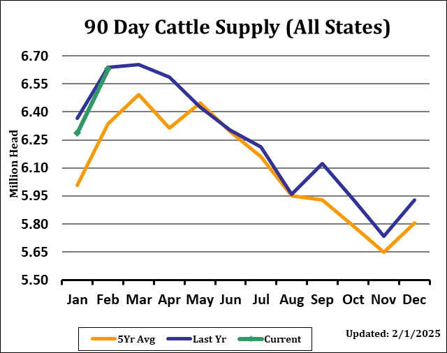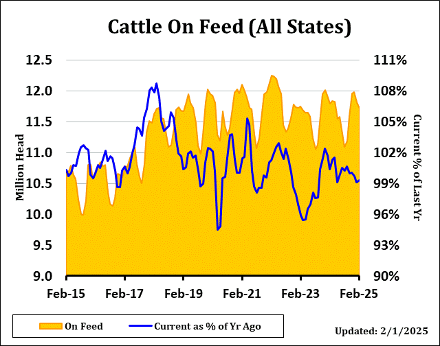 Cattle on Feed supply as of February 1st was 99.3% of last year, compared to the average trade estimate of 99.2% and a range of 98.7% to 99.9%.