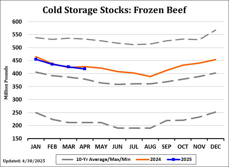 | Frozen Beef in Cold Storage - Recent History | |||||