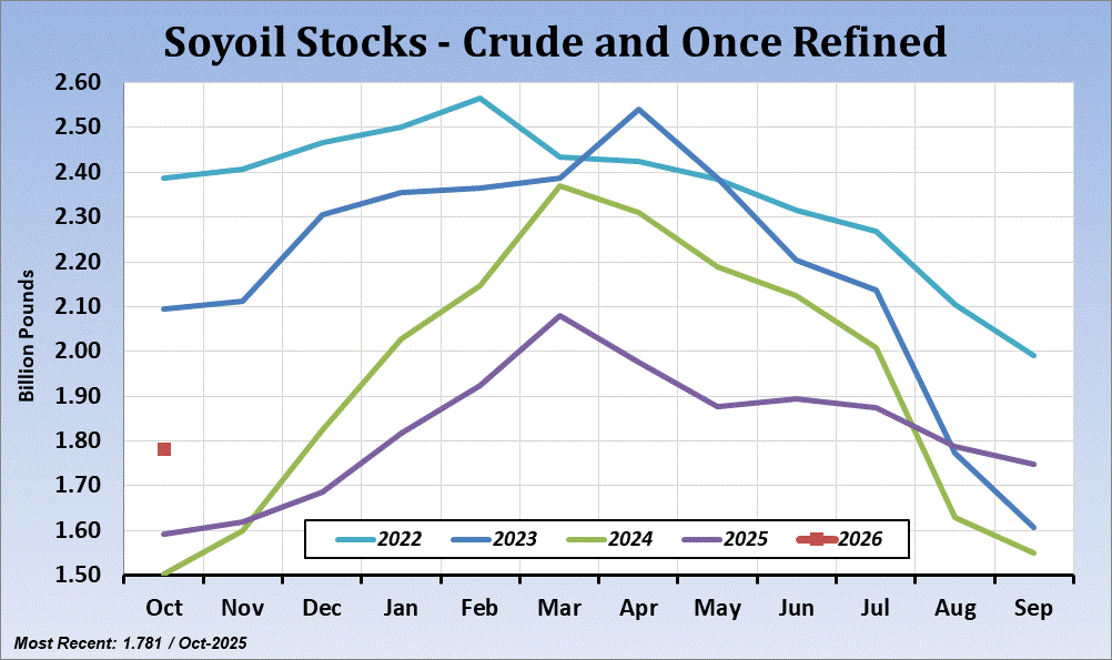 | US Soybean Oil Stocks - Crude & Once Refined (Billons of Pounds) | ||||||||