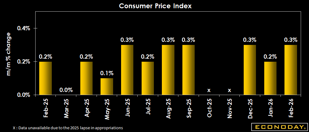 The February CPI report shows what is likely to be temporary stabilization in the pace of consumer price increases, with the headline and core numbers coming as expected. However, the impact of the ongoing war with Iran on energy prices, and the knock-on effect on the supply of other important commodities, as well as categories like airfare, should cause a spike in March consumer prices. Expect the Federal Reserve to remain on hold at its March 17-18 meeting to await clearer signals regarding the near-term path of inflation.
