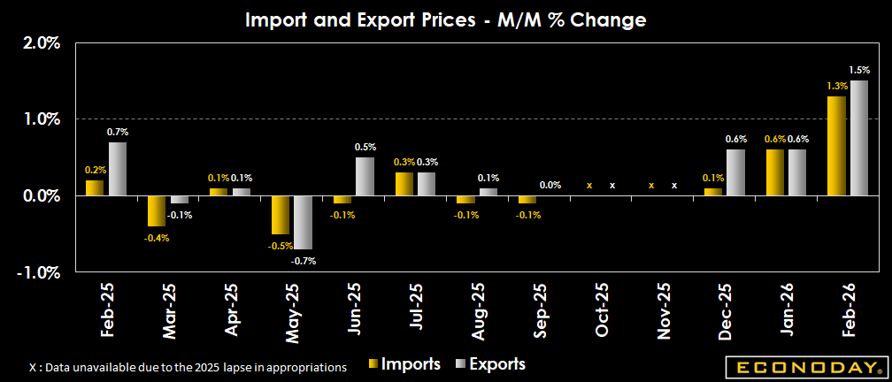 U.S. import prices increased 1.3 percent compared to February 2025. This is the largest rise since prices spiked in the same month last year with the imposition of the Trump administration's punitive tariffs.
