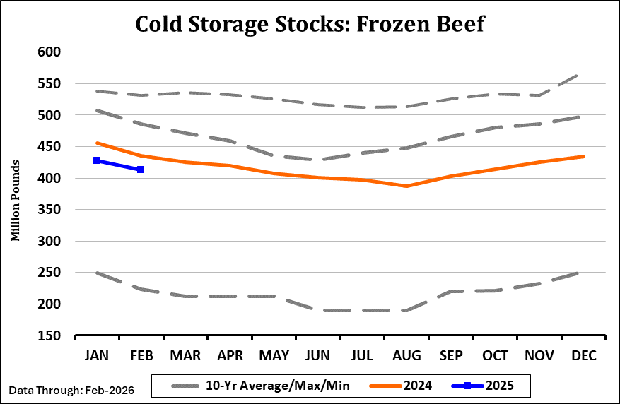 | Frozen Beef in Cold Storage - Recent History | |||||