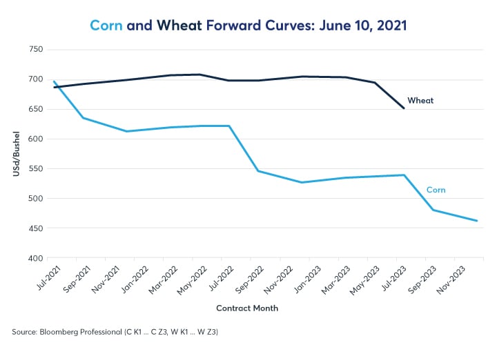 Figure 1: Traders see corn and wheat prices moderating after tremendous rallies