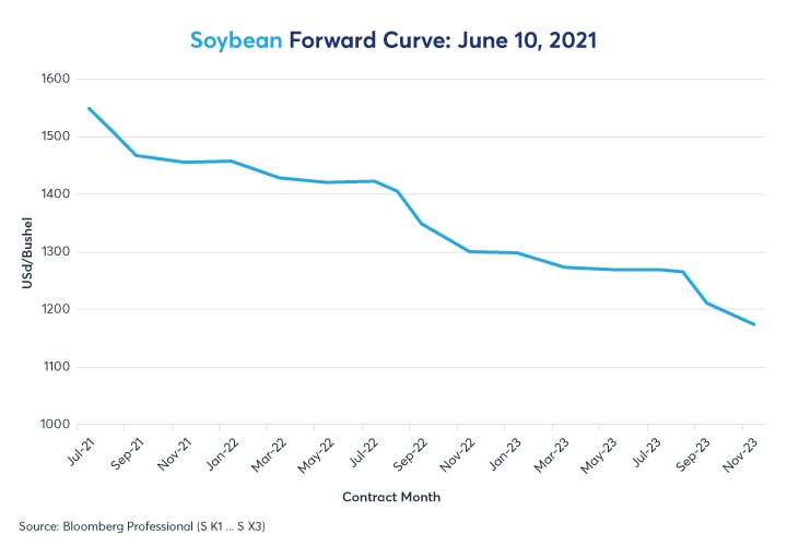 Figure 2: Traders favor a scenario in which soybean prices lose more than half their recent gains