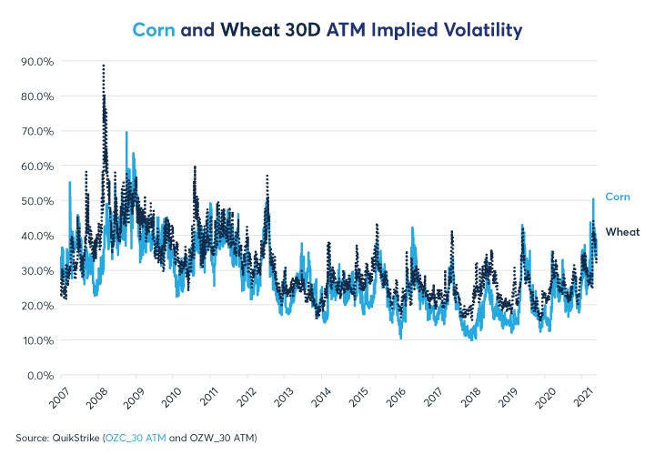 Figure 3: Corn and wheat options are the most expensive since 2012
