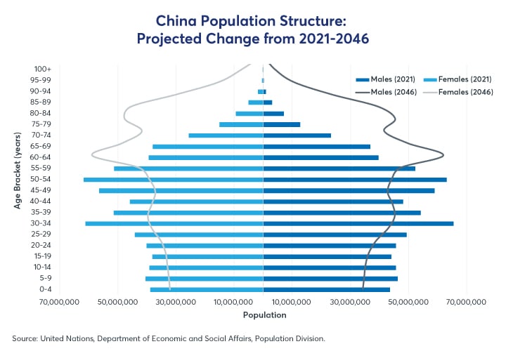 Figure 3: China may begin to see all age brackets below 60 decline