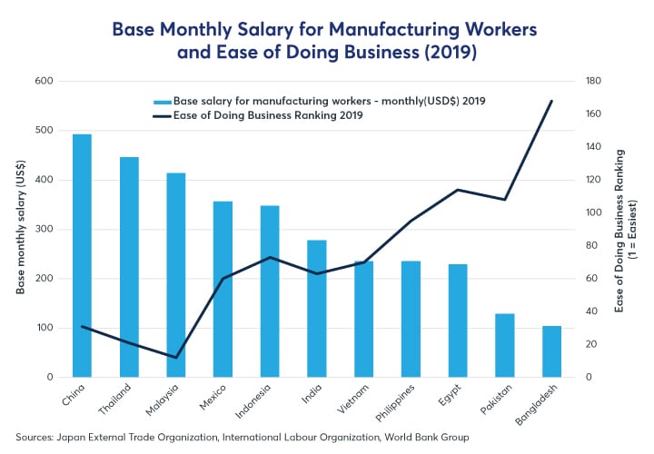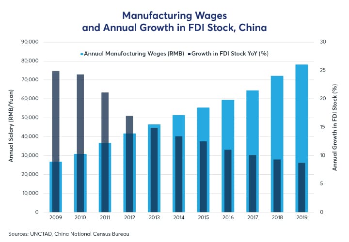 While a confluence of the U.S.-China trade policy and the COVID-19 pandemic have stirred producers to reassess their supply chains; the relocations are also being spurred by several structural factors, including rising Chinese labor costs.