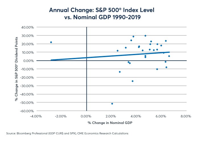 Figure 3: The S&P 500® has had a weak correlation to economic growth of 0.1 since 1990